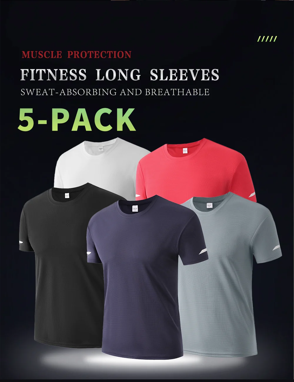 5Pcs Boyfriend Style Men's Print Color Ultralight QuickDry Sport T-Shirt, Breathable Lightweight Top For Fitness Training Workou
