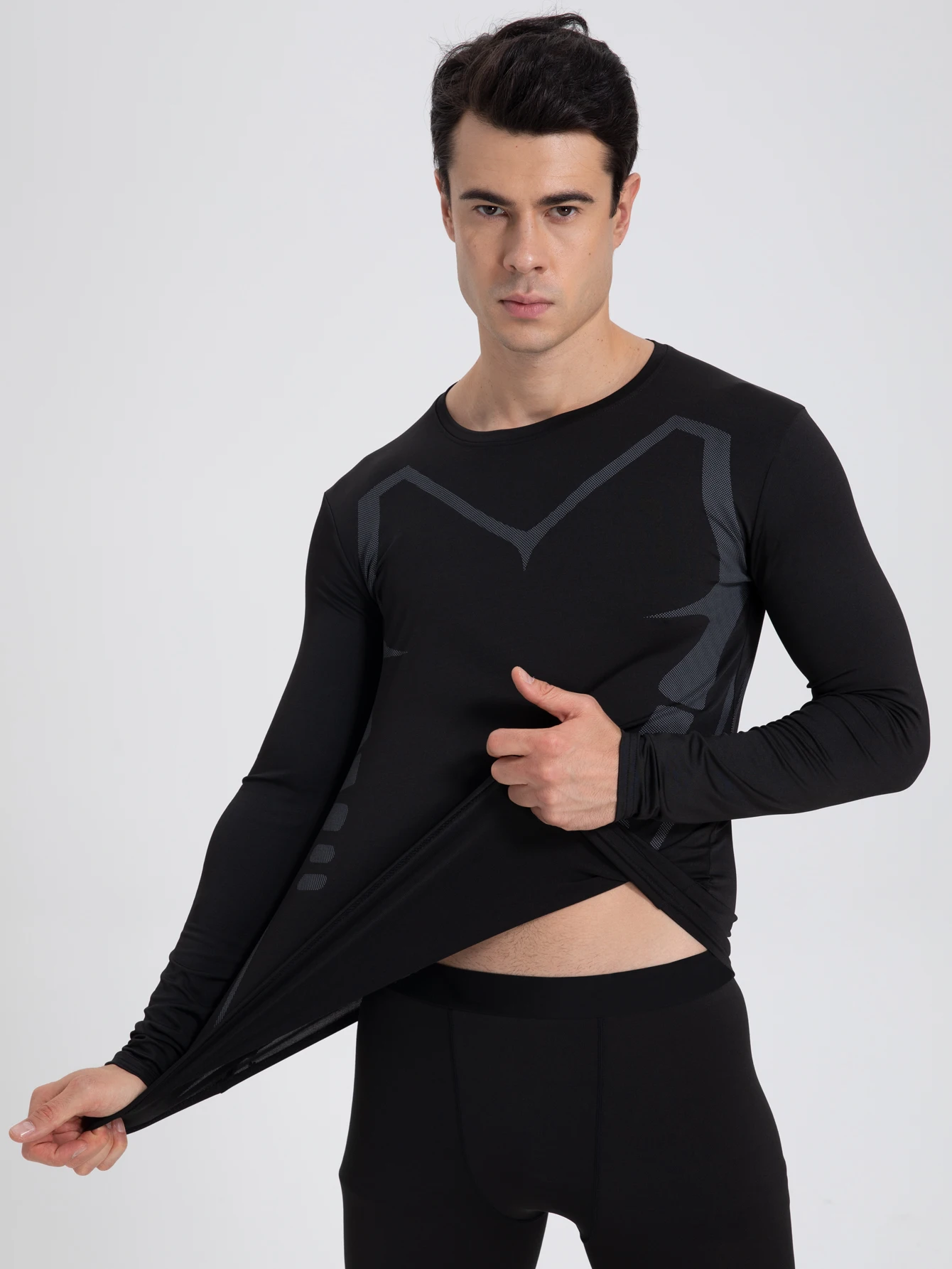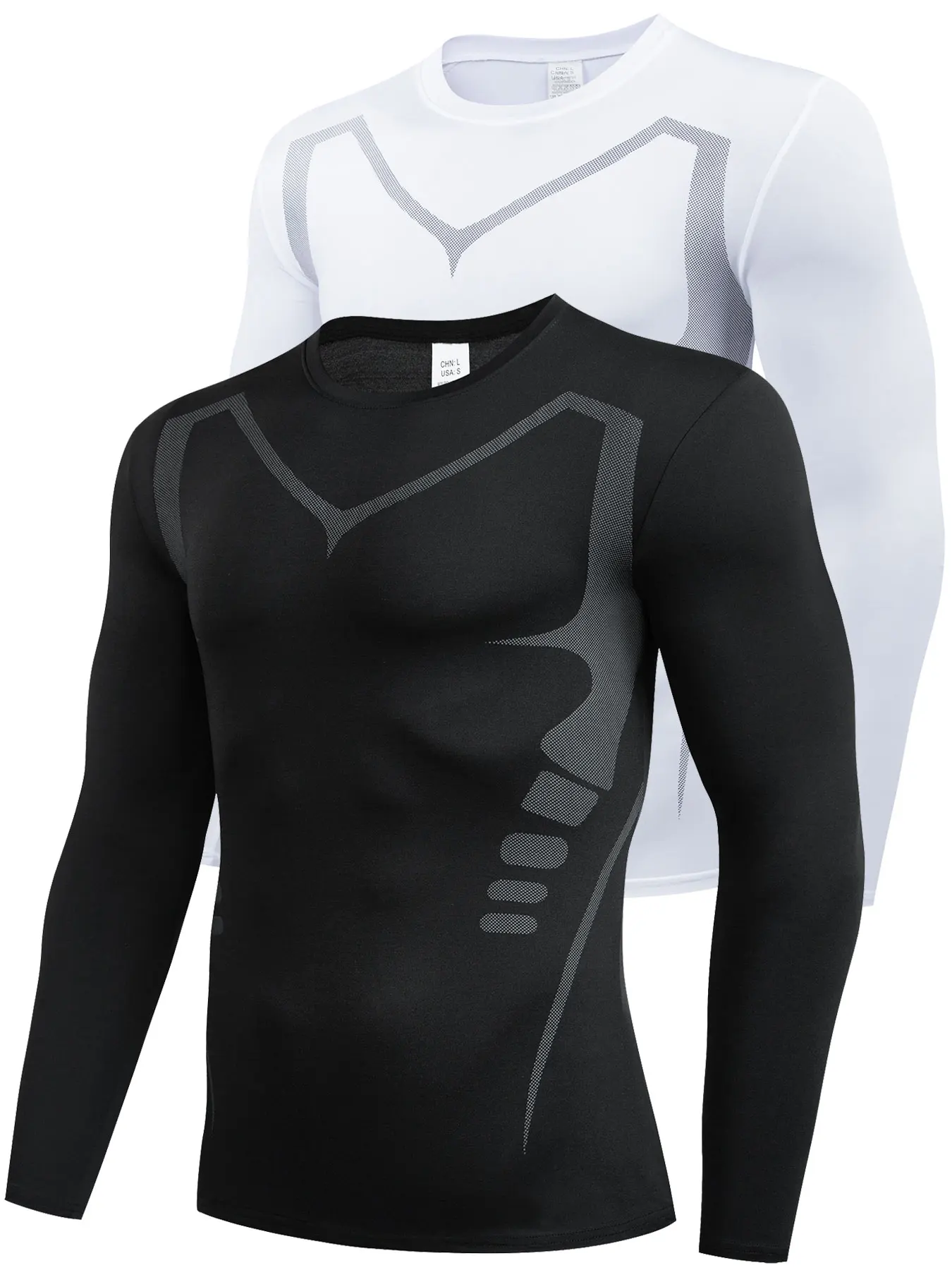 Breathable Compression Long Sleeve Sports Shirt for Men - Quick Drying Crew Neck Athletic Wear for Basketball, Running,Fitness
