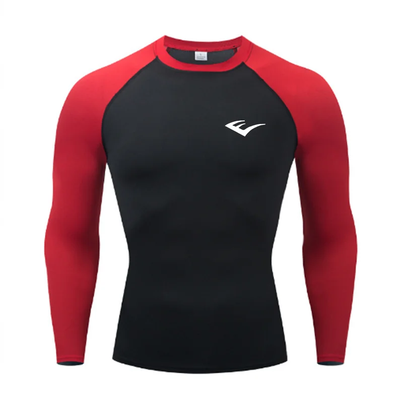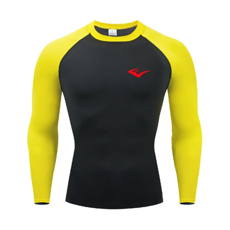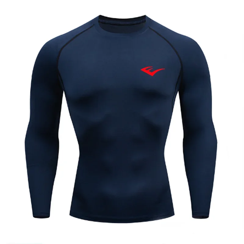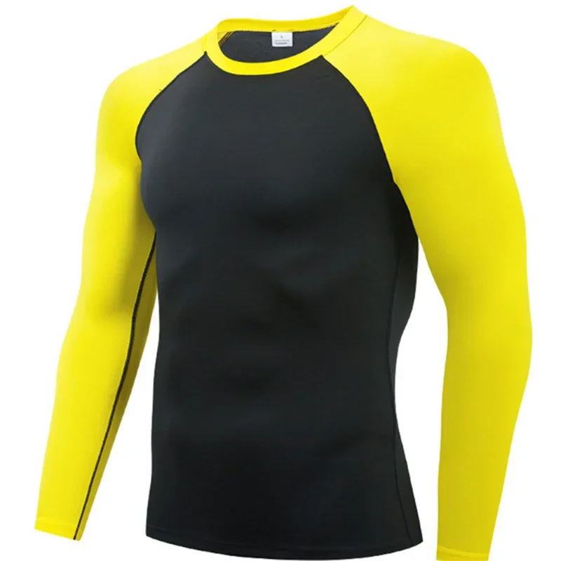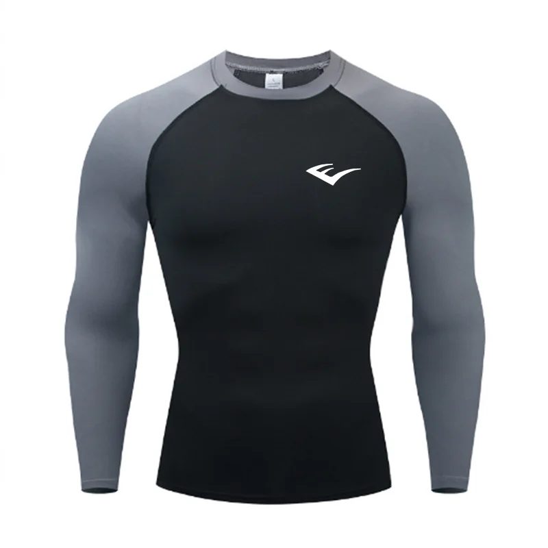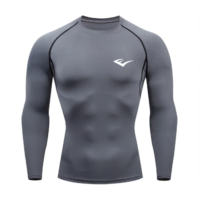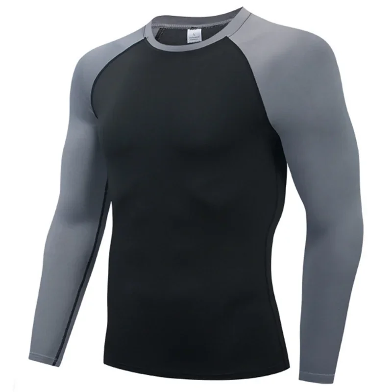 Men Round Neck Quick dry Long-Sleeved Compression Long Sleeved Sports Fitness Tight T-shirt Running Casual Spring and Autumn