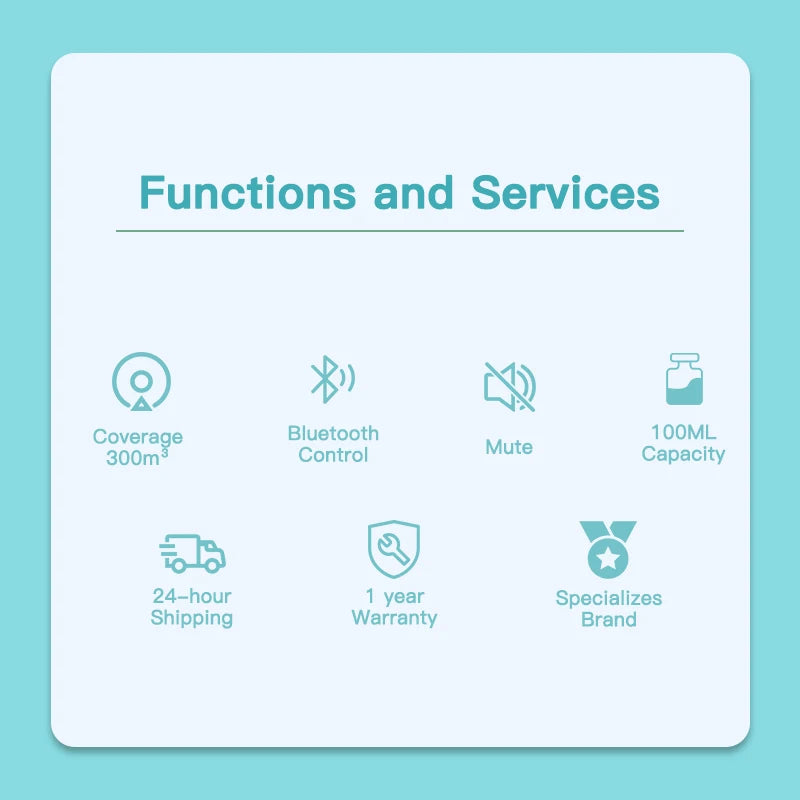 Introduction 1: The coverage area reaches 300 cubic meters, about 800 square feet, using nano-Atomization technology to make the essential oil atomization more delicate. Suitable for bedroom, bathroom and other small occasions.