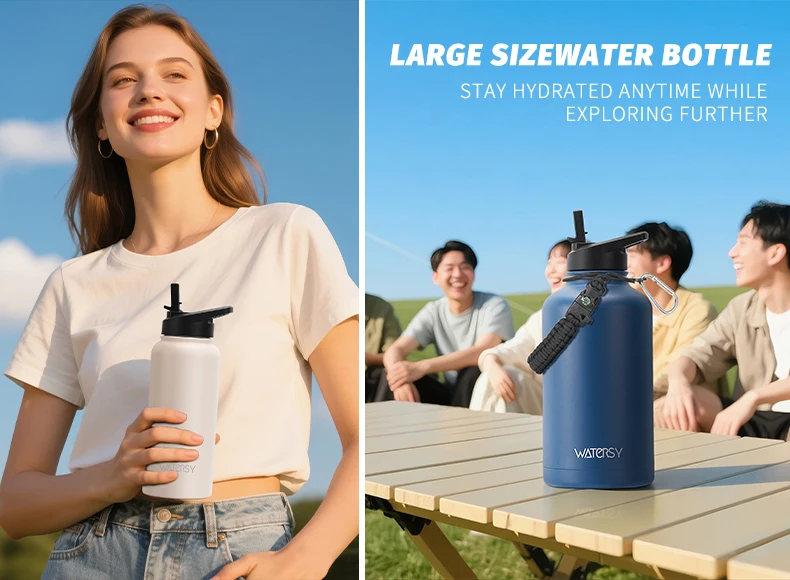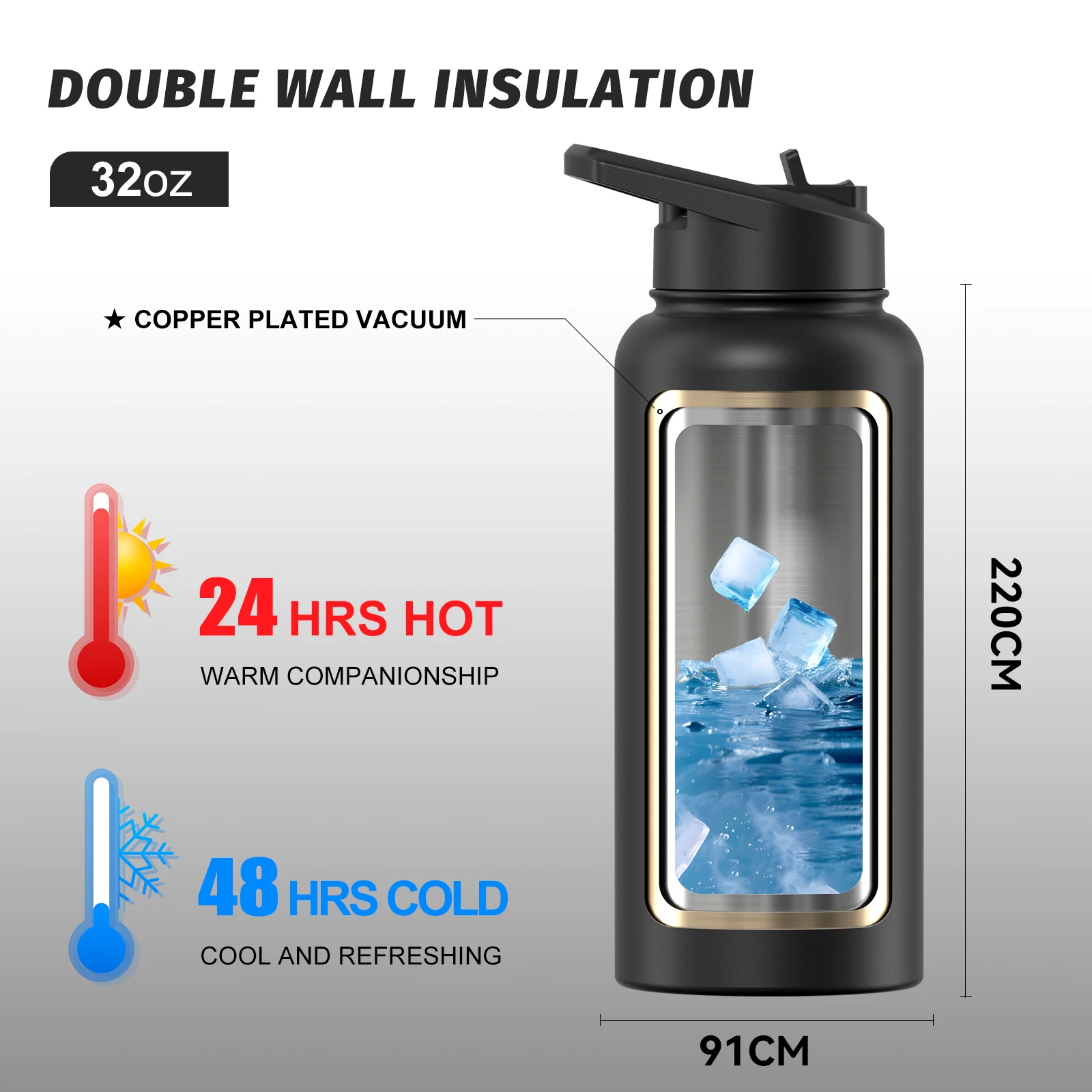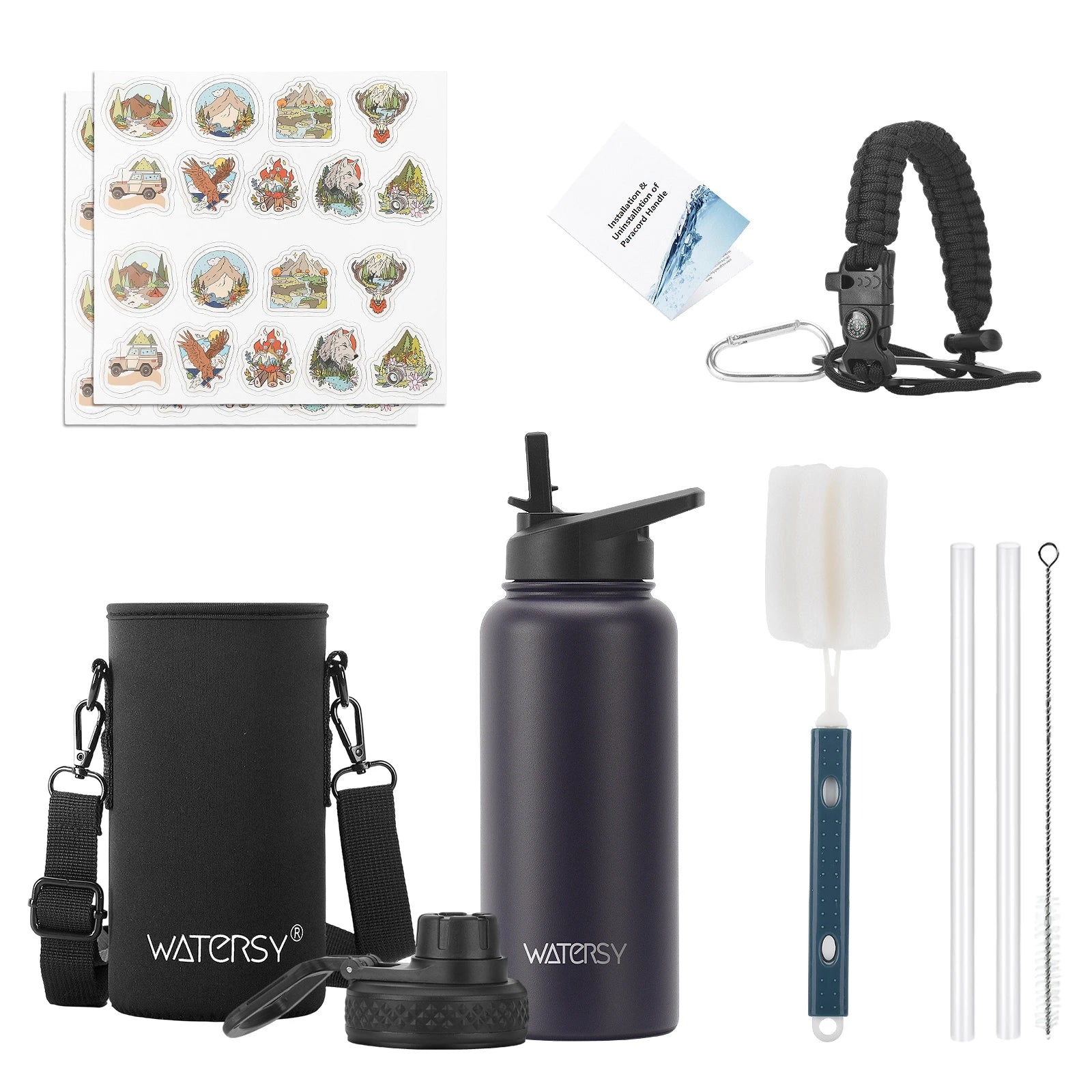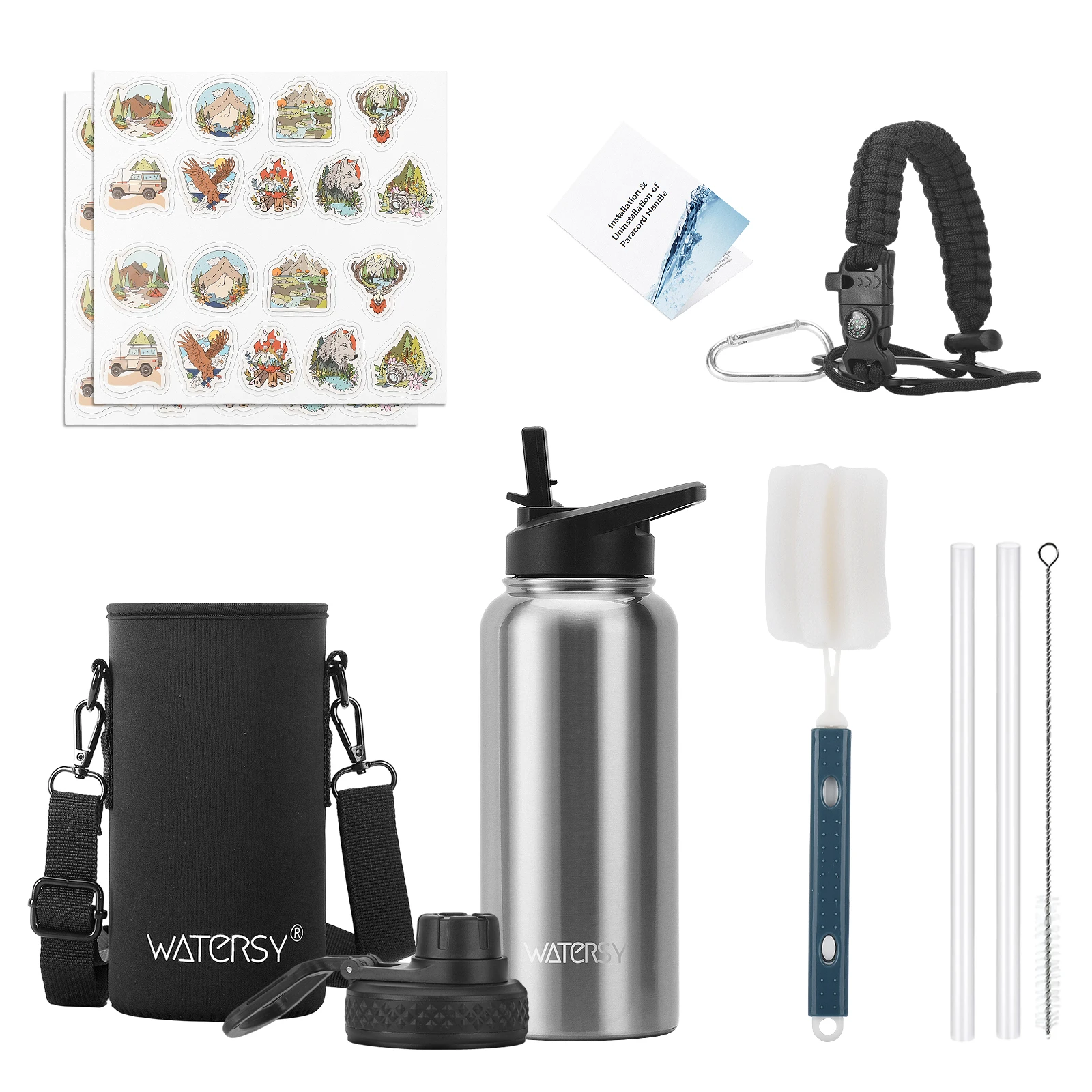 WATERSY 32oz Stainless Steel Thermal Cup Straw & Handle Portable Vacuum Insulated Water Bottle Outdoor Travel Sports Kettle