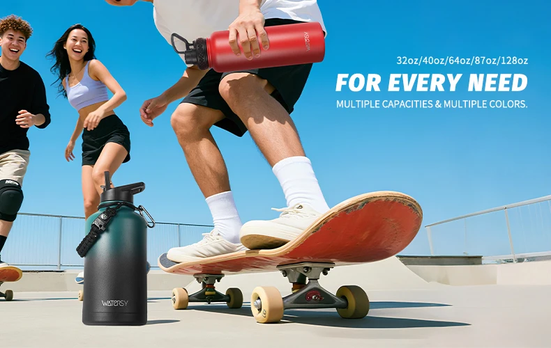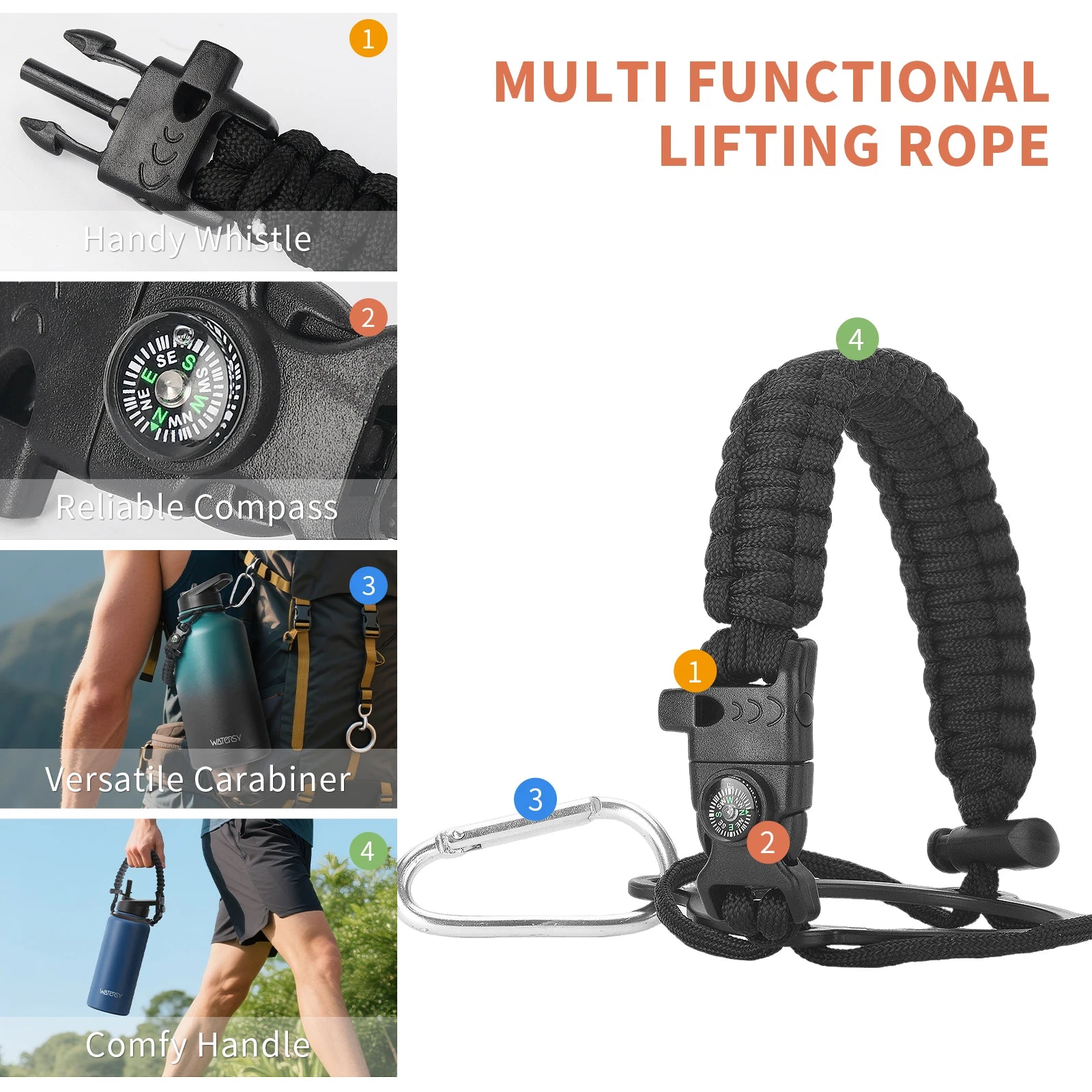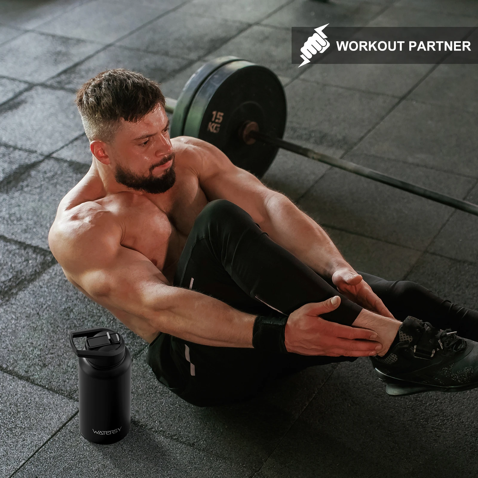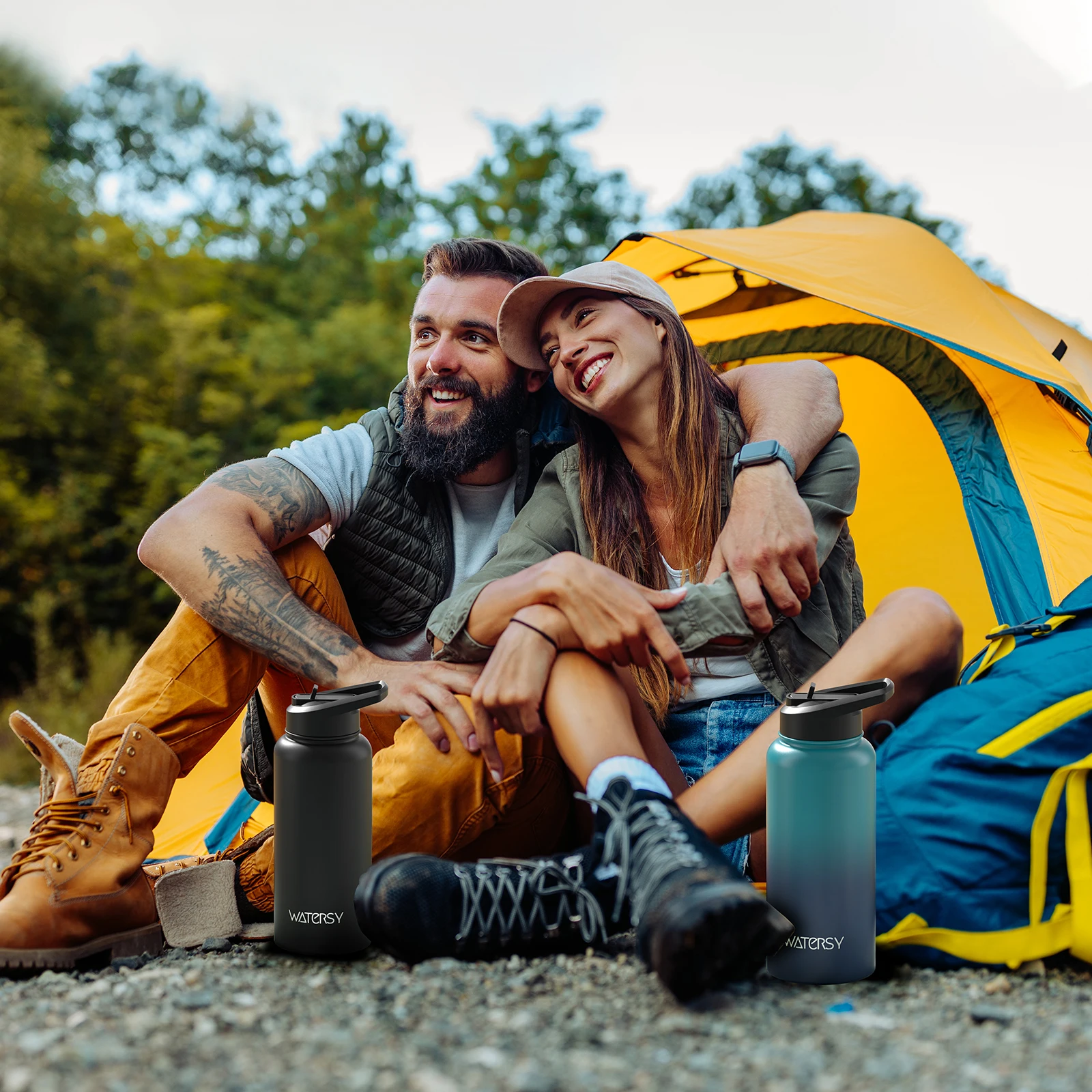 WATERSY 32oz Stainless Steel Thermal Cup Straw & Handle Portable Vacuum Insulated Water Bottle Outdoor Travel Sports Kettle