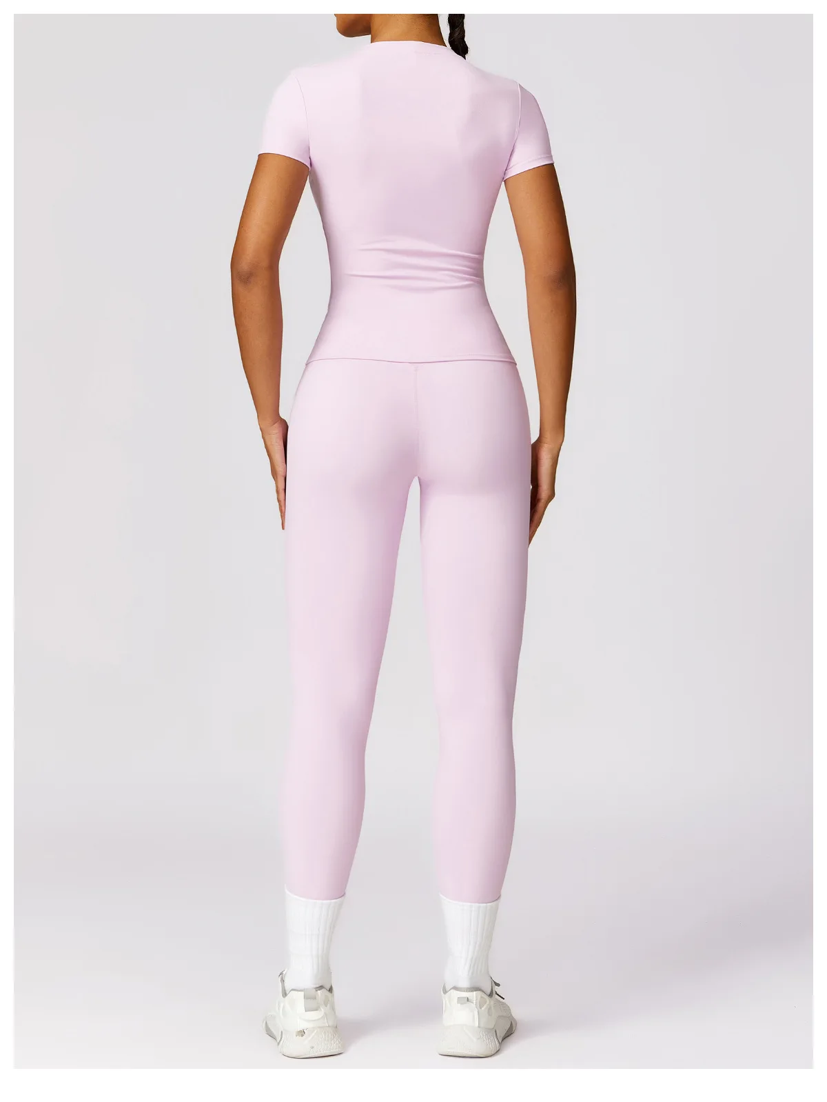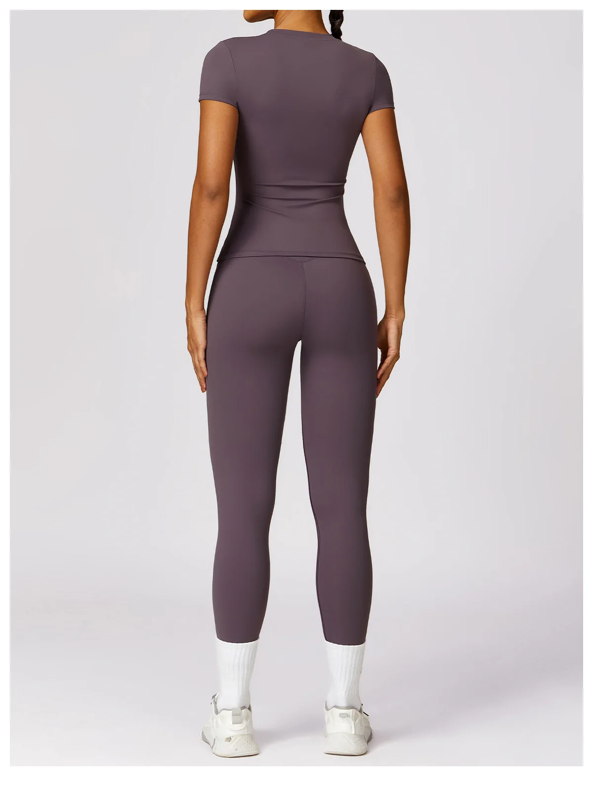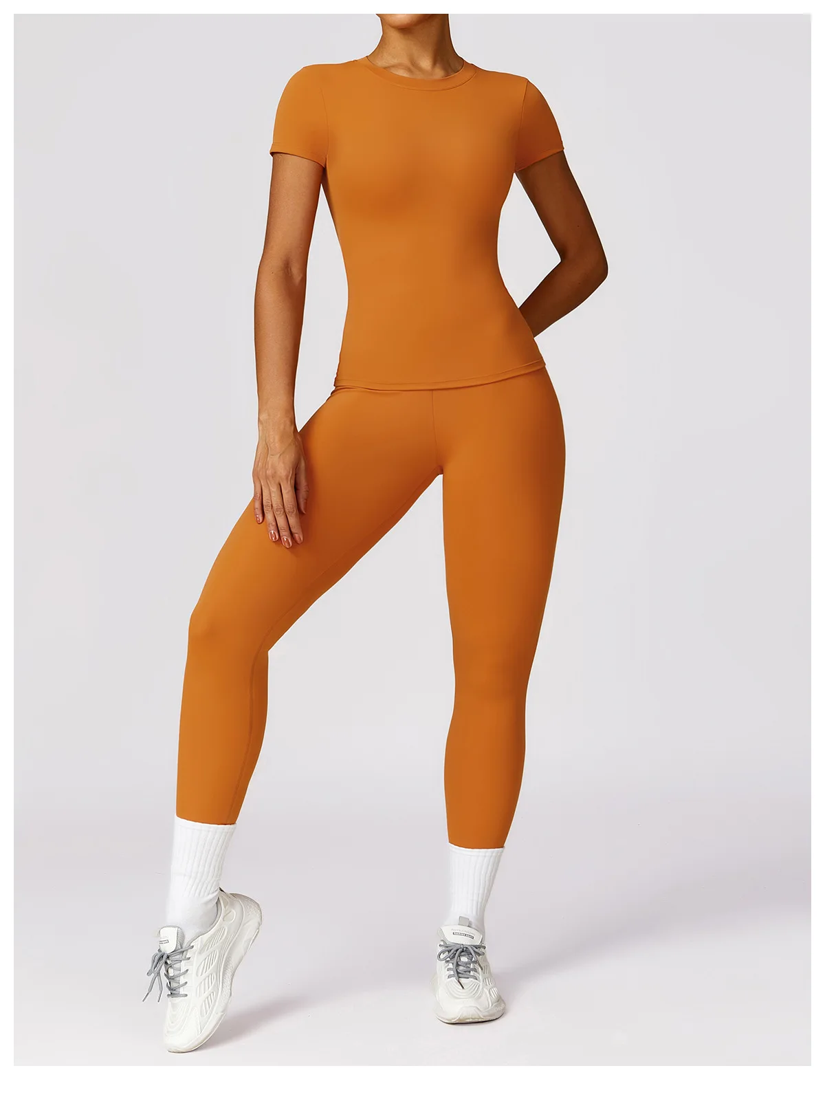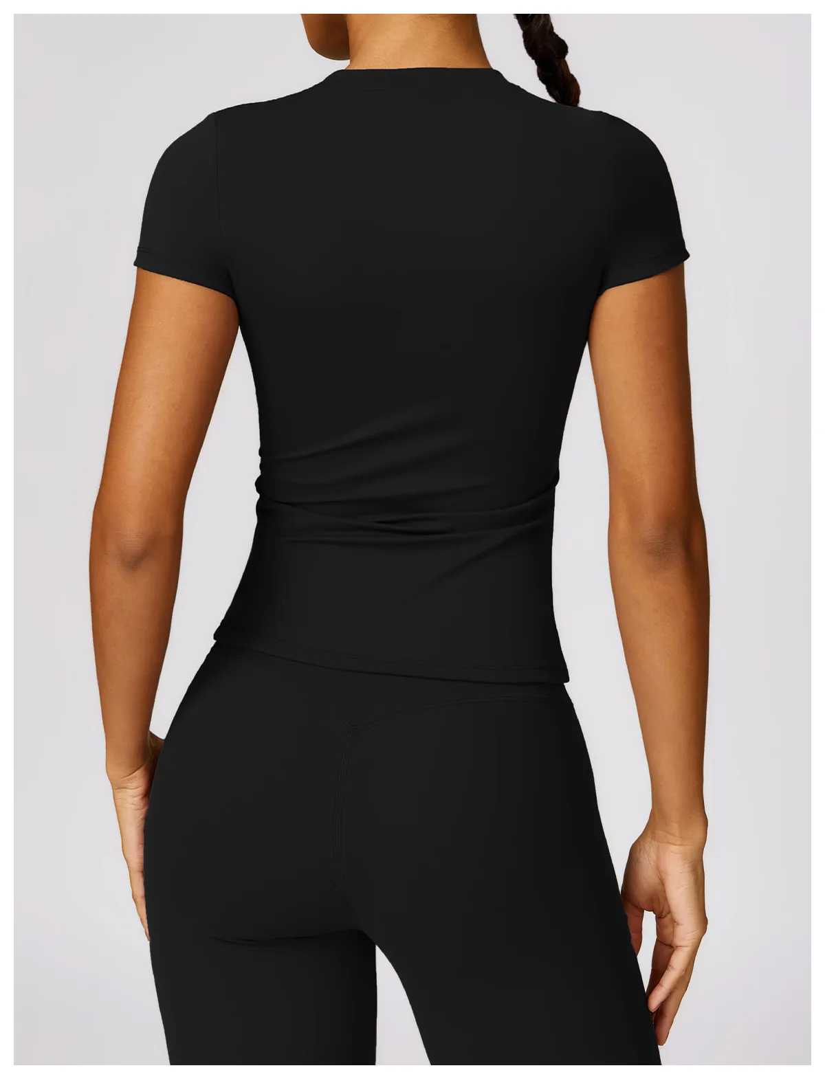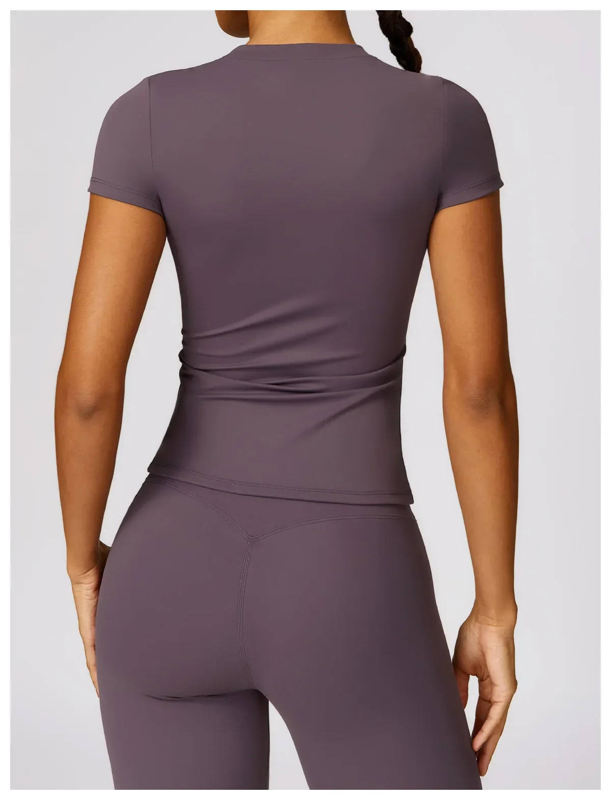 Women Running Sports T Shirt Summer Short Sleeve Round Neck Breathable Stretchy GYM Yoga Slim Fitness Active Top Tee