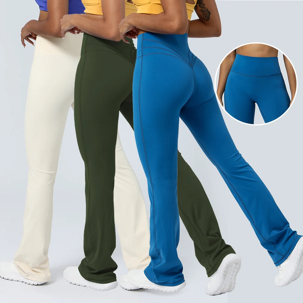 Women Yoga Flare Leggings High Waist Dance Pilates Fitness Gym Buttock Lifting Workout Wide-Leg Pants Outdoor Train Sport Tights